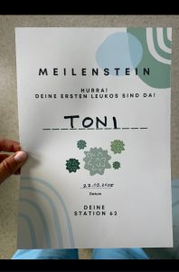 Es gibt kaum wundervollere Nachrichten: Das Transplantat arbeitet – und der kleine Toni hat seine ersten eigenen Leukozyten!