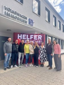 Tobias Fruh (3.v.li.) ist selbst Stammzellspender und das Thema lässt ihn bis heute nicht los. So hat er bereits vor einigen Jahren bei seinem Arbeitgeber – VW Immobilien – zu einer Typisierungsaktion im Rahmen der Betriebsversammlung erfolgreich organisiert und nun fand er es an der Zeit, erneut einen Aufruf an seine Kollegen*innen zu starten.
