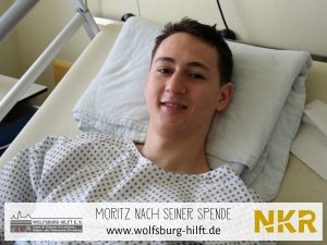 Am 17. April stand für ihn in der Medizinischen Hochschule Hannover (MHH) eine Knochenmarkspende an. „Vor der Narkose und der Operation hatte ich schon Respekt“, erzählt der 21-Jährige am Spendetag. „Ich fühle mich aber ziemlich gut, auch direkt nach der Operation hatte ich keine Schmerzen.“ Moritz drückt seinem Empfänger ganz fest die Daumen, dass er wieder ganz gesund wird.